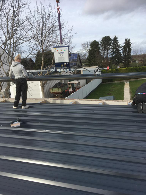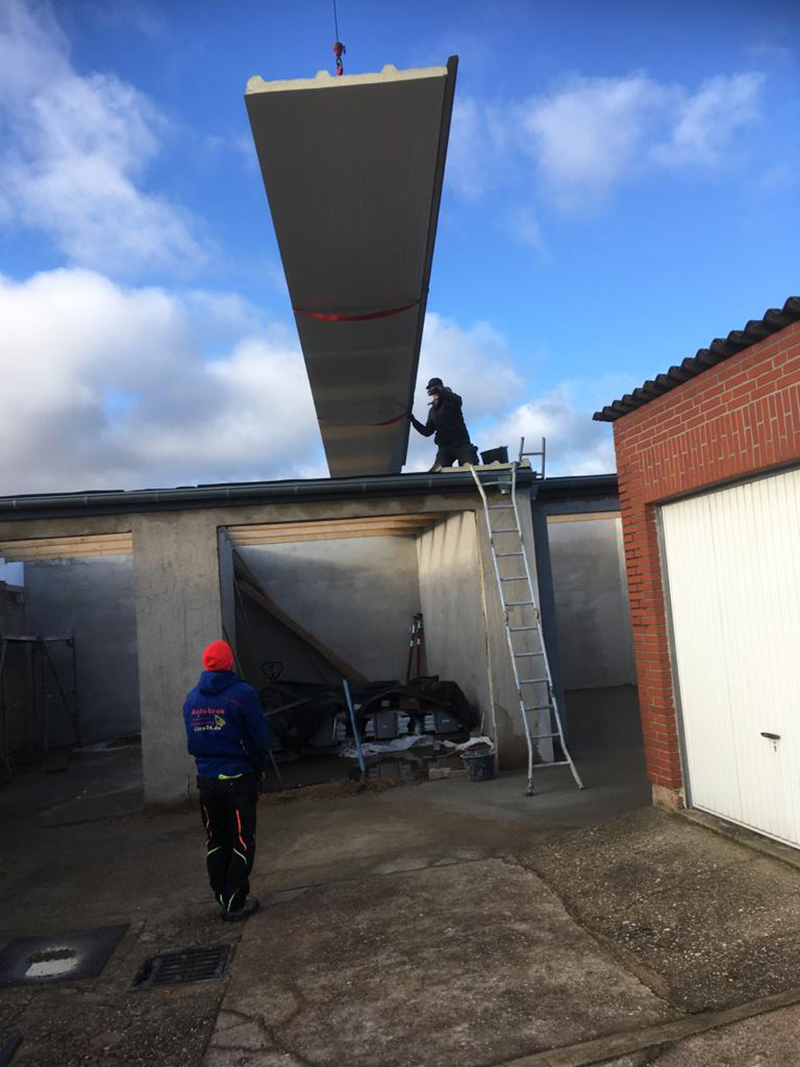 Eindeckung von Sandwitchelementen per Kran